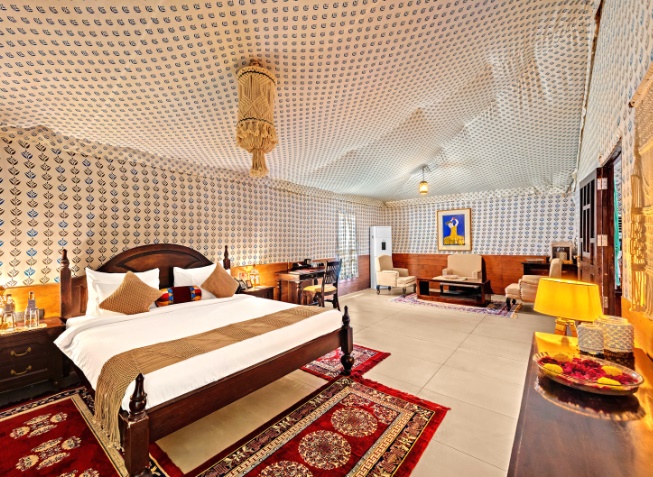 Located in the scenic Sadhu-Bet island, the Statue of Unity Tent City 1 offers a peaceful riverside retreat. Stay in a charming Swiss-style cottage just steps away from the world's tallest statue.