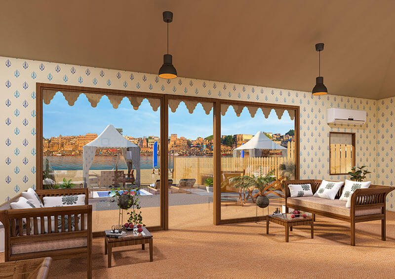 Varanasi Tent City tour presents a harmonious blend of elegance and indulgence, offering an array of accommodations. From lavish river-facing villas complete with plunge pools and a private beach to expansive opulent tents boasting awe-inspiring views, modern luxuries, and a spirit of warm hospitality.